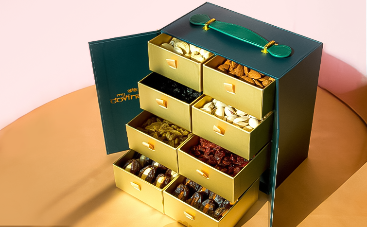 Roasted almonds, cookies, premium dates, flag sweet box, makhana, roasted cashew, kerala mixture