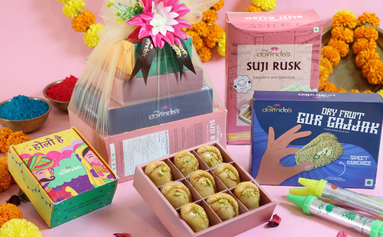 Assorted Gujiya , Makhana, Gajjak , Colour box, Mouth Freshener