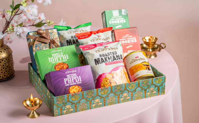 Premium Sweets, Besan Papdi, Namak Para, Roasted Makhana, Cookie and incense sticks.