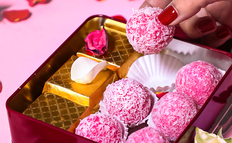 Kaju Fancy Pcs 4 Rose Laddoo Pcs 3 Biscoff Laddoo Pcs 4 Strawberry Slice Pcs 3 Rose Laddoo Pcs 4
